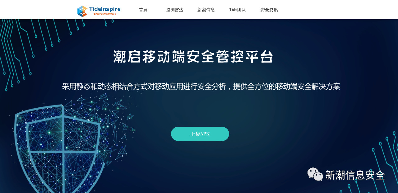 由于网络安全等级保护制度2.0体系中对于移动互联安全提出了专项扩展要求,新潮信息配合网络安全监管机构推出了“潮启移动端安全管控平台”,App开发运营机构可以自主上传移动端应用程序,通过多引擎的检测分析,了解移动端程序的安全状况。